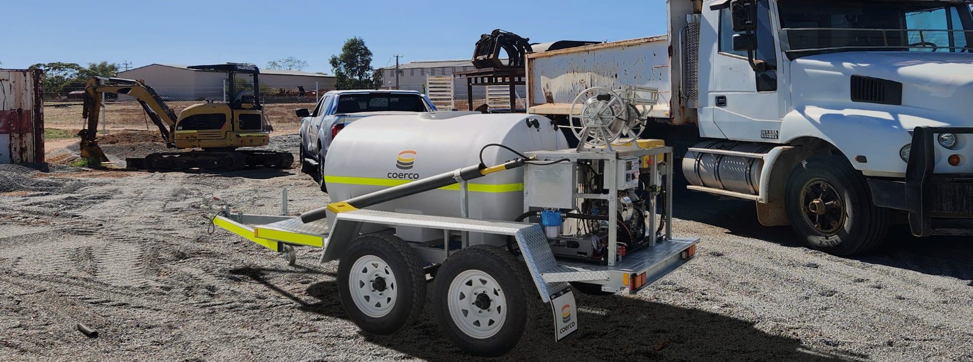 High-capacity trailed hot/cold pressure washer units available in 1,000L and 1,500L sizes.